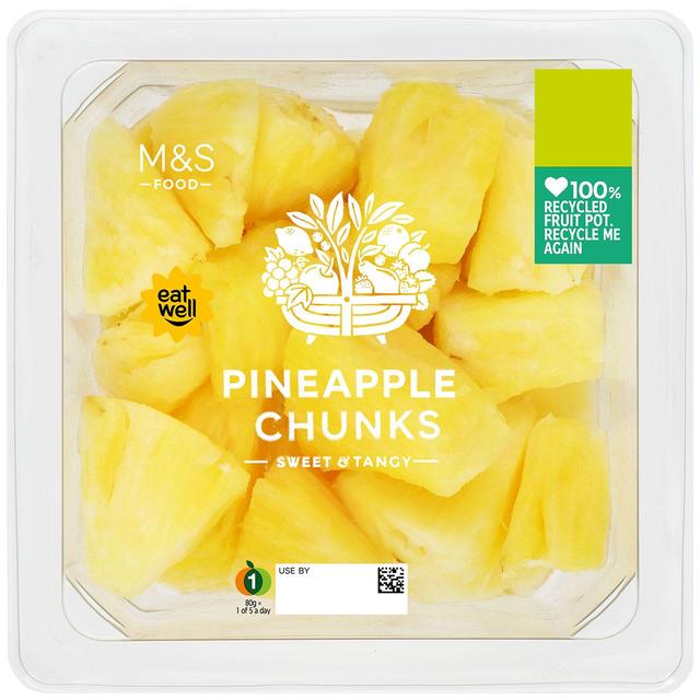 Sweet and juicy pineapple chunks. Ideal for snacking on or adding to sweet and sour curries. 1 of your 5 a day.