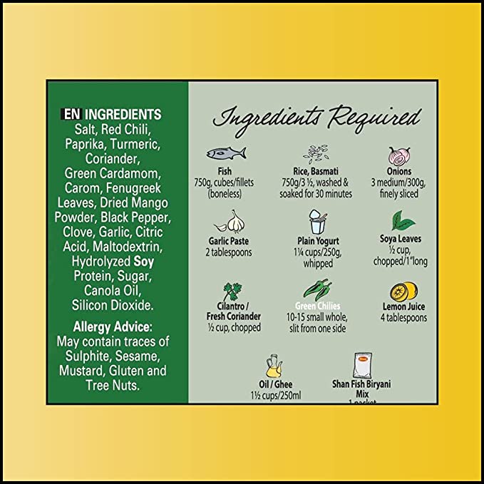 Shan Fish Biryani Mix has a perfect blend of rich and aromatic spices to help you rejoice the traditional taste of Fish Biryani. The quick and easy way to make all your favourite Indian and South Asian meals! Whether you want a curry or a seasoning, there’s sure to be a Shan mix spice for you.